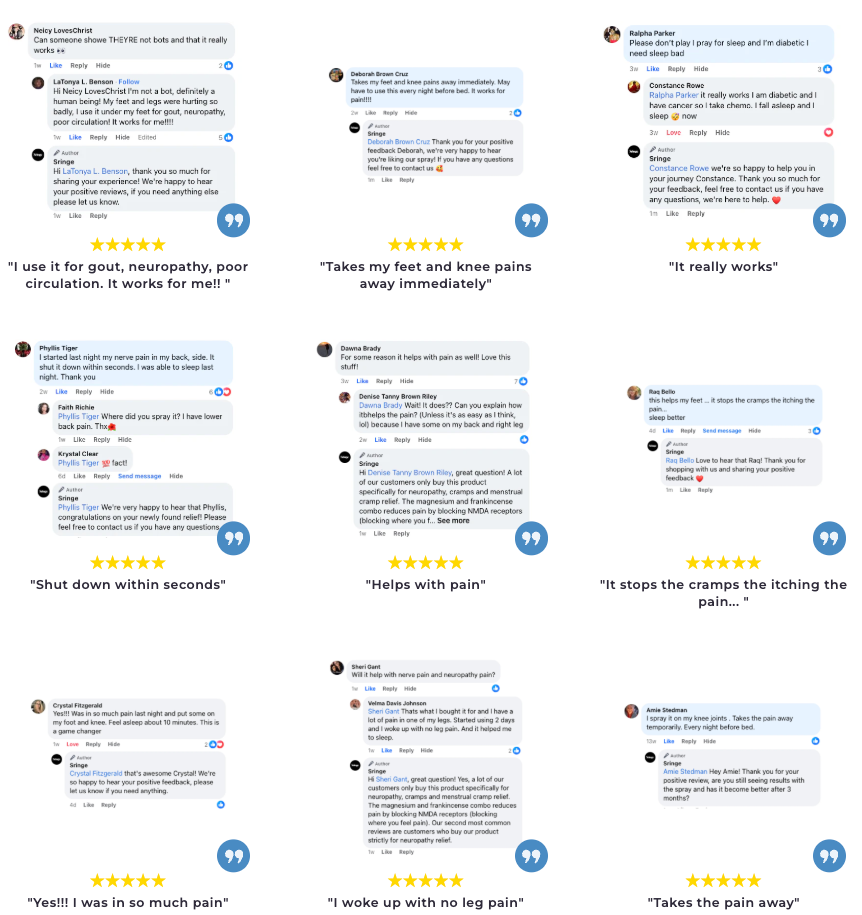 If you go on Sringe's website, you'll find hundreds of people who were able to put an end to their suffering just from spraying this on themselves.